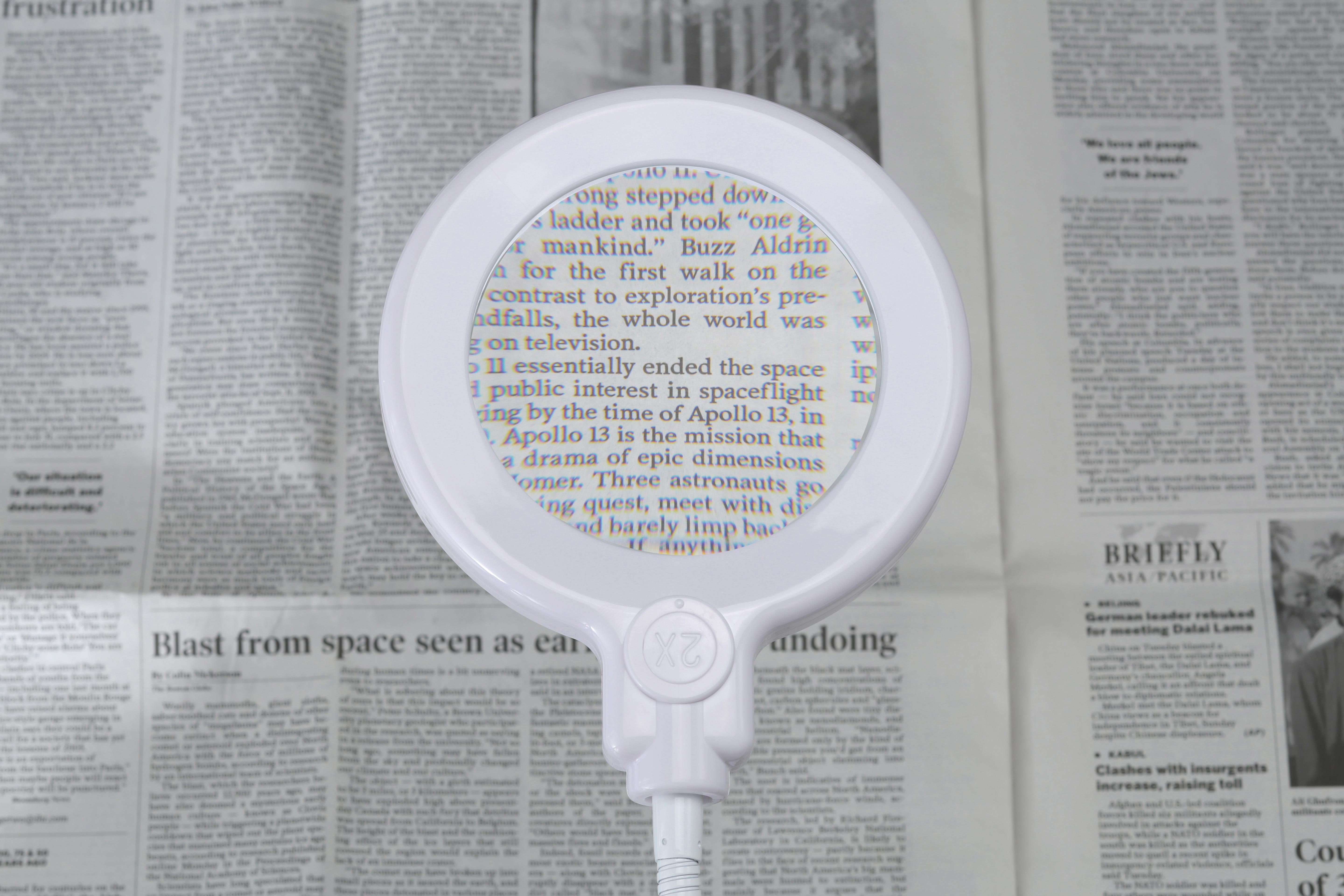 大口径100mmのガラスレンズを採用しています。両目で見ることができるため長時間の使用でも疲れにくく、読書はもちろん、裁縫やプラモデル作りなど長時間の作業に最適です。