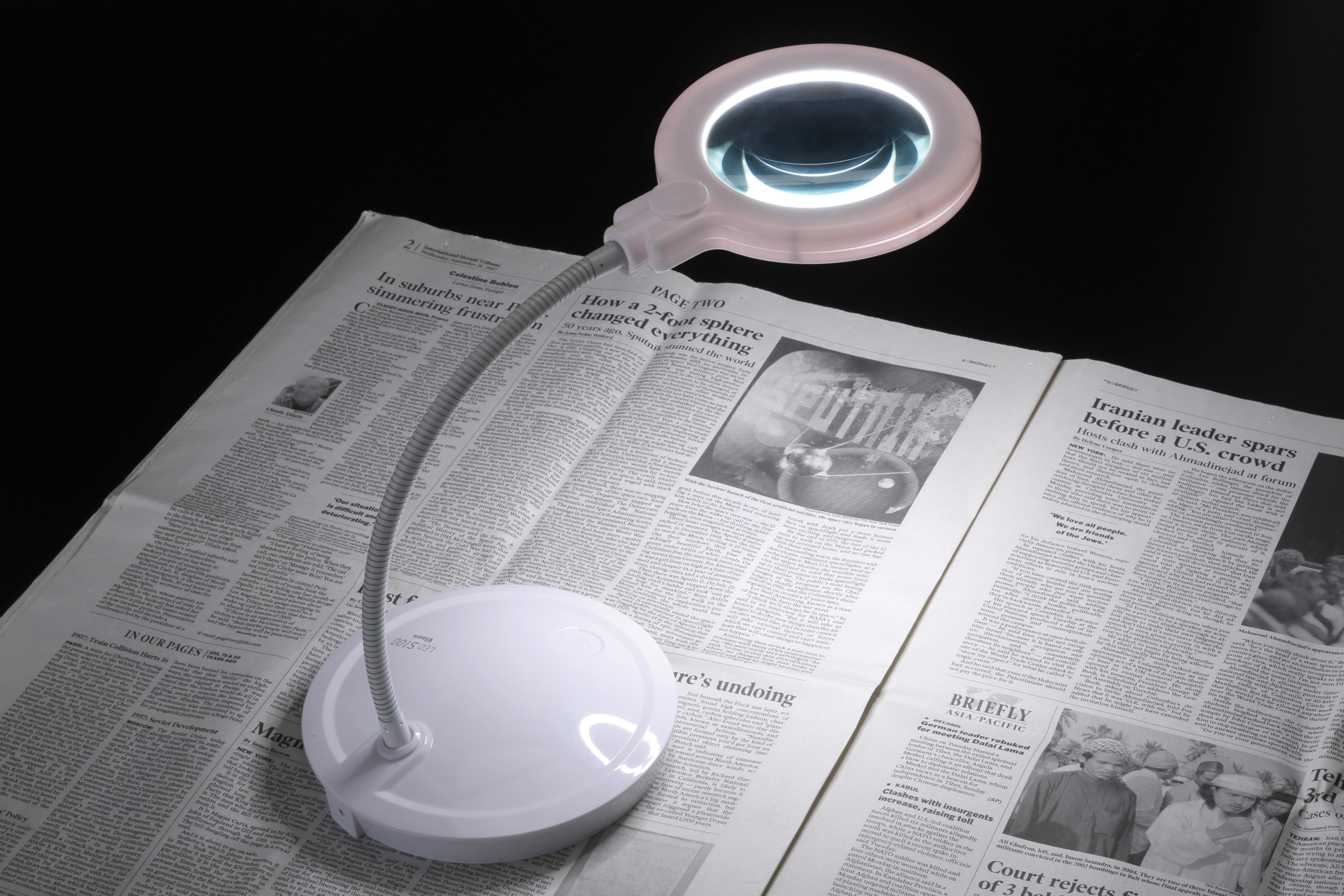 両手を自由に使えるスタンド型ルーペ(LED照明付)。見やすい大口径100mmレンズ