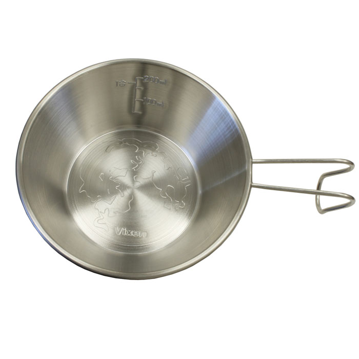 お米も計れる目盛り付きのステンレスカップ。直火での調理も可能です。スタッキングができて収納もかさばりません。