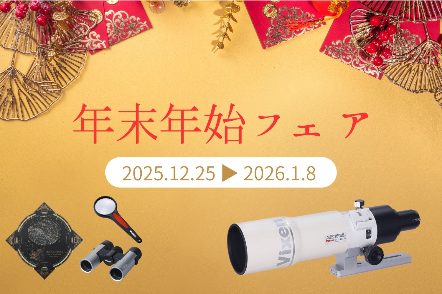 2026年を最高の視界で迎えよう🔭 天体望遠鏡、双眼鏡、ルーペに加え、新年を彩るアクセサリーや雑貨も最大60%OFFの大特価!