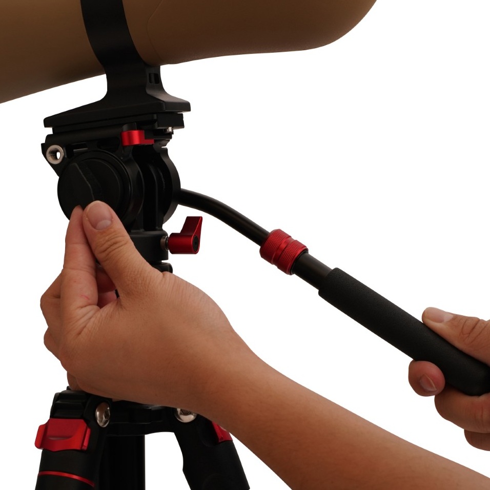 ビデオ三脚の安定性と操作性を、フィールドスコープや一眼カメラに。