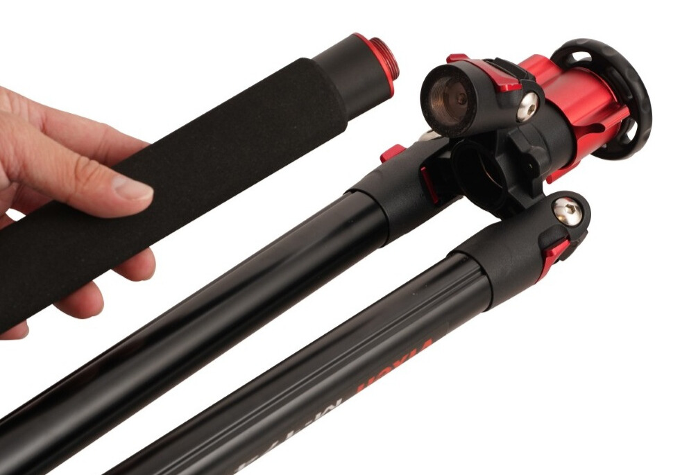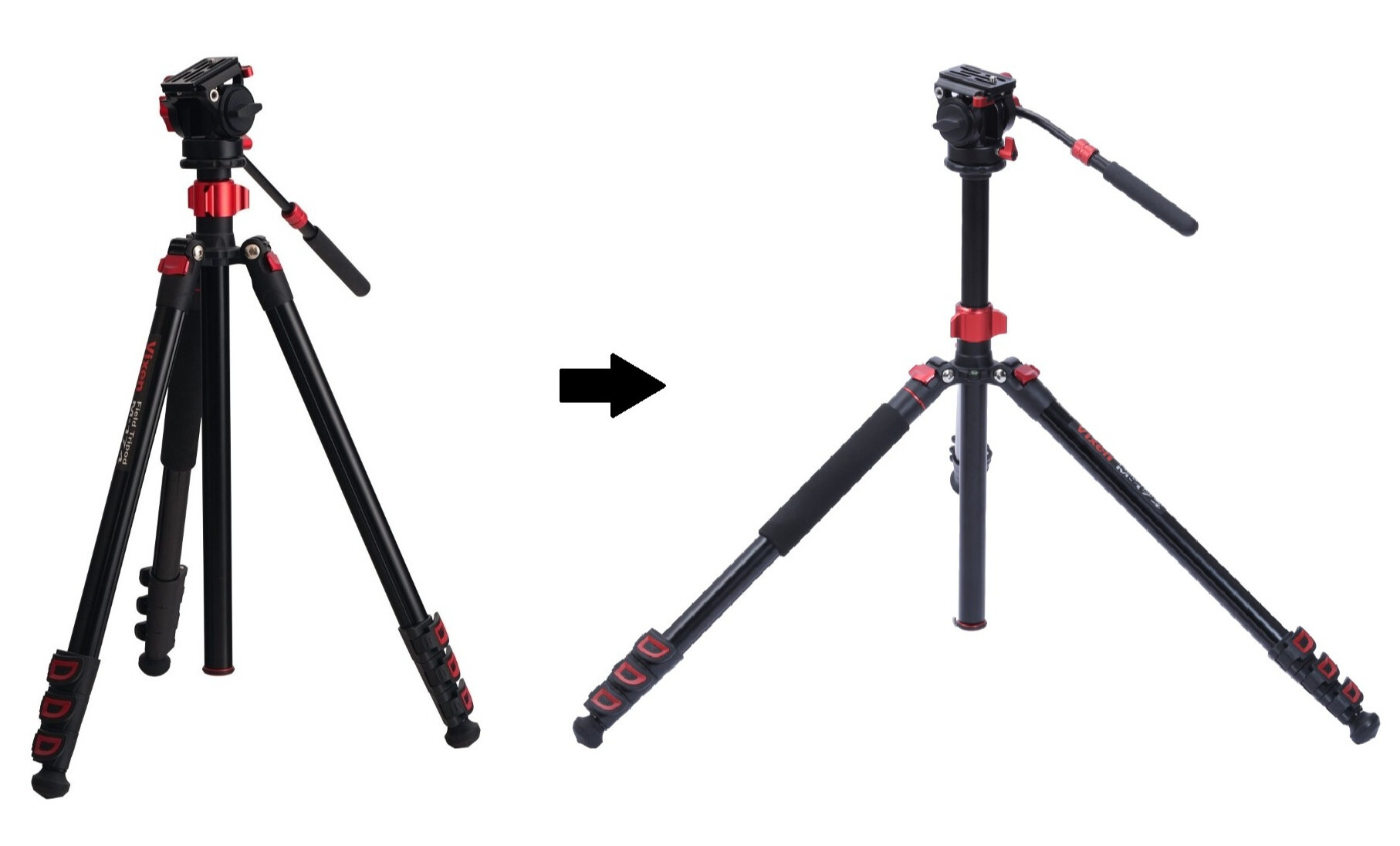 また、脚を取外して一脚としても使用でき、狭い場所や手持ち撮影の補助に役立ちます。 -