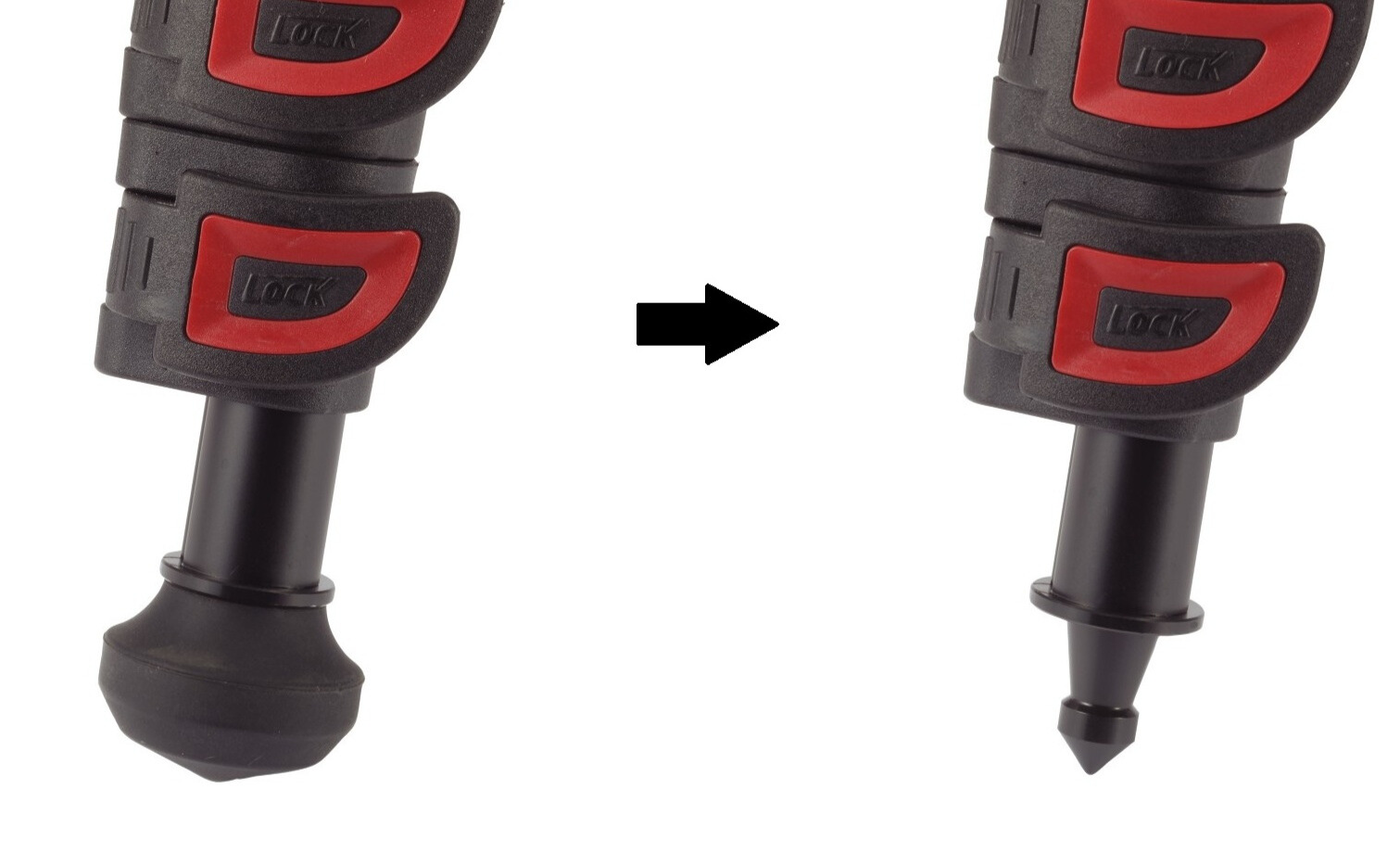 石突ゴムを外すと金属製のスパイクへ切り替え可能。硬い地面にしっかりと設置できます。