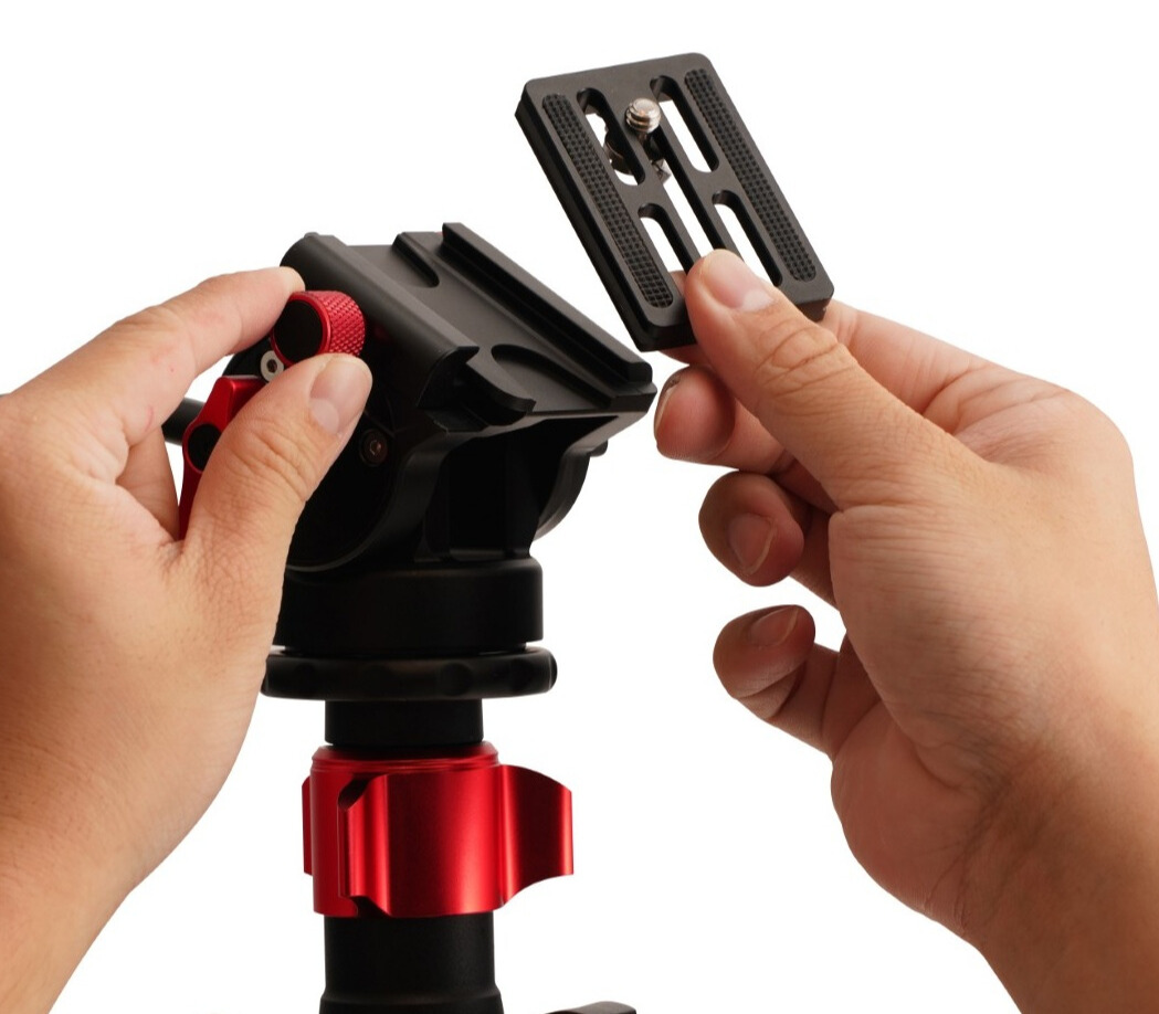 カメラの着脱が素早く簡単に行えるクイックシューを搭載。一般的な薄型プレート規格に対応しています。