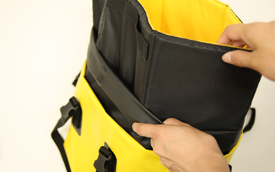 バッグの壁のウレタンフォームは8分割のパネルでできているため、全体の形状をフレキシブルに変更でき、様々な形状のバッグにご使用いただけます。